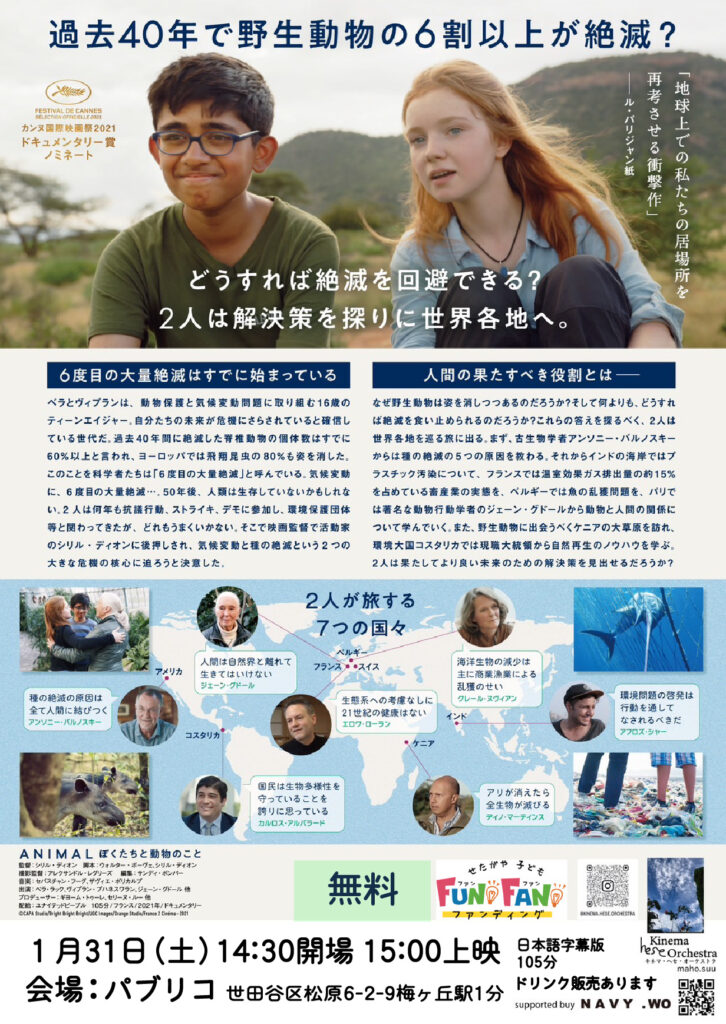 「ANIMAL〜ぼくたちと動物のこと〜」(字幕版)を上映します!